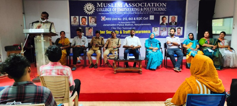 Muslim Association College Of Engineering NSS Units & IEDC Cell in association with Venjaramoodu Janamaithry Police Station organized a orientation program on the topics 'CYBER SECURITY AND TRAFFIC AWARENESS' on 30/08/2022.The program was inaugurated by respected ISHO of Venjaramoodu Police Station Sri. Saijunath and orientation sessions were handle by Sri. Satheesh Shekhar Sir (Sub Inspector, Cyber Station ,TVM) And Sri Laiju (AMVI, RTO Enforcement). The sessions were conducted for the Diploma and BTech students.